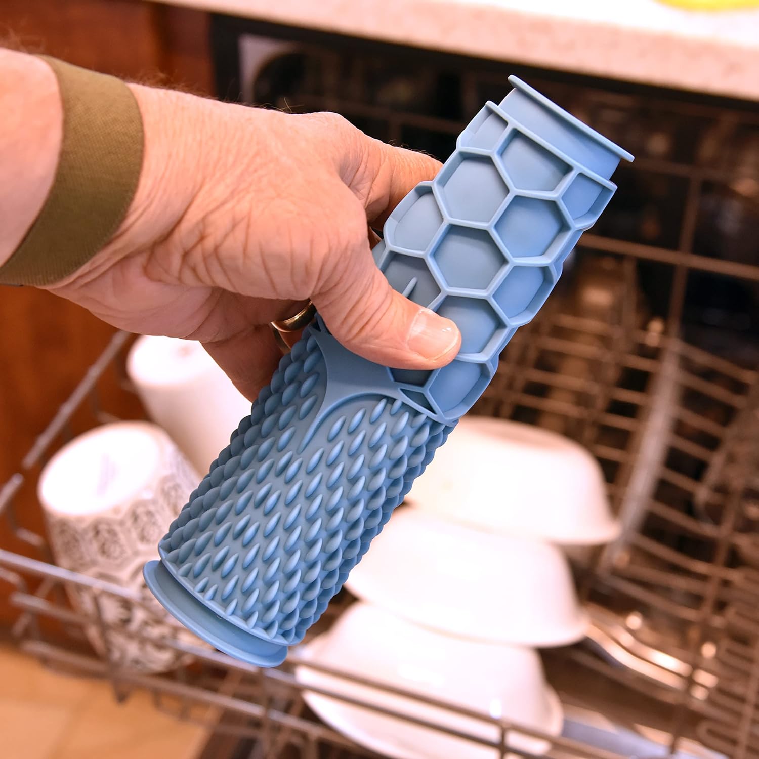 Dos texturas diferentes (hoyuelos y panal) para estimular la lengua de tu mascota y promover una alimentación más lenta y saludable.